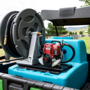 Equip your fire fighting setup with the Fire Fighting Poly Hose Reel. It features a base-mounted steel frame, a rotating handle, and 36m of 19mm hose with an adjustable nozzle for effective firefighting.